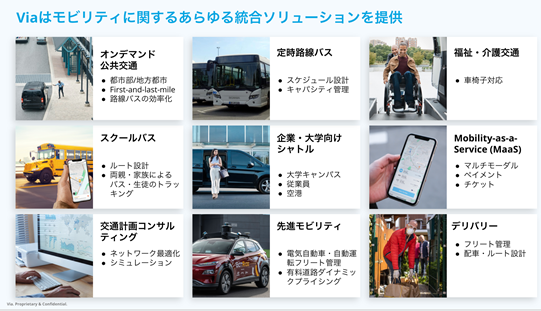 交通機関や自治体、企業の従業員向けシャトルをはじめ、小中高・大学や学童などの教育機関、介護事業者など幅広いパートナーに運行システムを提供し、移動効率の向上、交通渋滞の緩和、CO2排出量の削減等、社会問題の解決に寄与します。