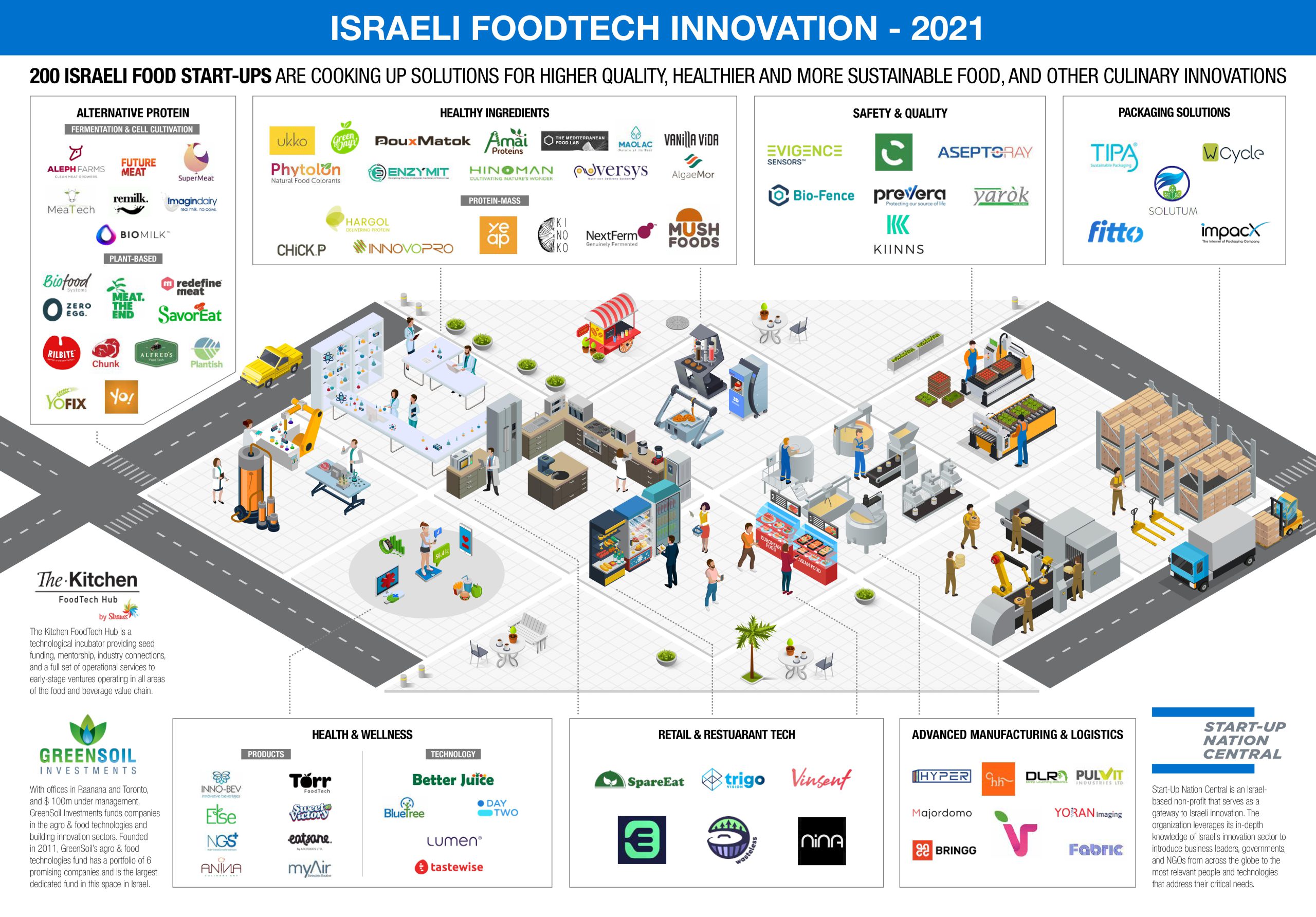 イスラエルのフードテック部門の強さは、政府の支援や天然資源の不足から学んだ教訓など、さまざまな理由があり、それが世界の緊急課題の1つとなるずっと前から、「より少ないものでより多くを育てる」ための革新的な手法や技術が育まれてきました。イスラエルのフードテックイノベーション能力は幅広く、土壌や植物のセンサー、最先端の群れ飛ぶドローン、自律型ロボット、植物遺伝学プラットフォーム、培養肉、代替タンパク質、スマート灌漑、ビッグデータ分析ソフトウェアなど様々なものがあります。
